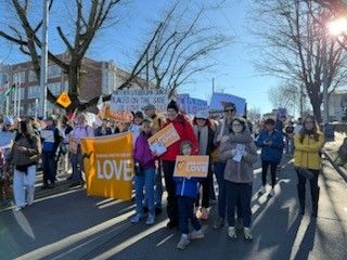 From UUC's Acting for Racial Justice Team: Long time and new members and friends, family, and staff of UUC showed up to honor Dr. Martin Luther King, Jr. at Seattle's MLK Day march. Many wearing decades-old white UUC T-shirts or UUA Side with Love apparel , we marched in support of a message of love , peace, community, and resistance. Interviewed by KIng5 video (at 01.14) and described in the online transcript: UUC members Catherine Ruha and Margaret Sutro sounded these values. “'We’ve got to raise up the voice of love and peace and harmony and community, in face of a regime that chooses to make people suffer and murder them and cause harm,' said Catherine Ruha of University Unitarian Church." Others stressed that the meaning of the day lies in continued engagement. “This is not a day off, this is a day on to see all the people that can make something happen in our community over and over again. We need each other. It’s great to be out and see it,” one marcher [Margaret Sutro] said.] Carrying the church's UUA Side with Love banner alongside thousands of other marchers, we felt both a renewed sense of purpose, and determination to keep acting together toward the goal of Dr. King's Beloved Community. As MLK said in the I Have a Dream speech: “We cannot walk alone. As we walk, we must make the pledge that we shall always march ahead. We cannot turn back.”