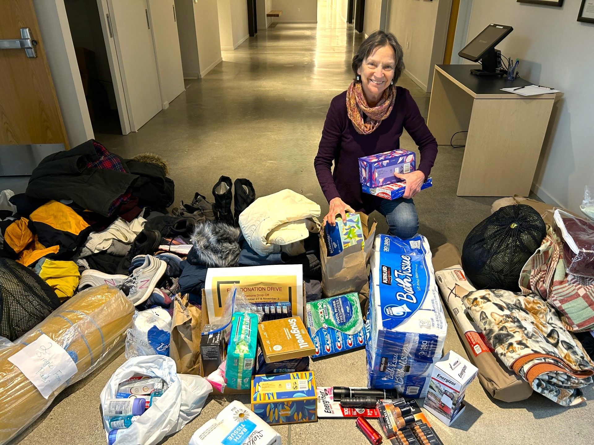 Many thanks to the members and friends of UUC who responded so generously to the recent donation drive sponsored by the UUC Homelessness Ministries Team. Several carloads of items to help keep folks healthy and warm were delivered to God’s L’il Acre Day Center and Tent City 4 during the two-week drive. These included tents, tarps, sleeping pads, cots, sleeping bags, blankets, flashlights and batteries, warm clothing, shoes and boots, and lots of hygiene supplies. God’s L’il Acre staff member Hannah Egass said, “Wow! This is great! We can really use these things!” A few minutes later, a Welcome Volunteer at Tent City 4 sorting through the donations said “Someone was just asking for a tarp this morning! I’ll give this to him now.” Everyone was very appreciative of our concern for their well-being.
