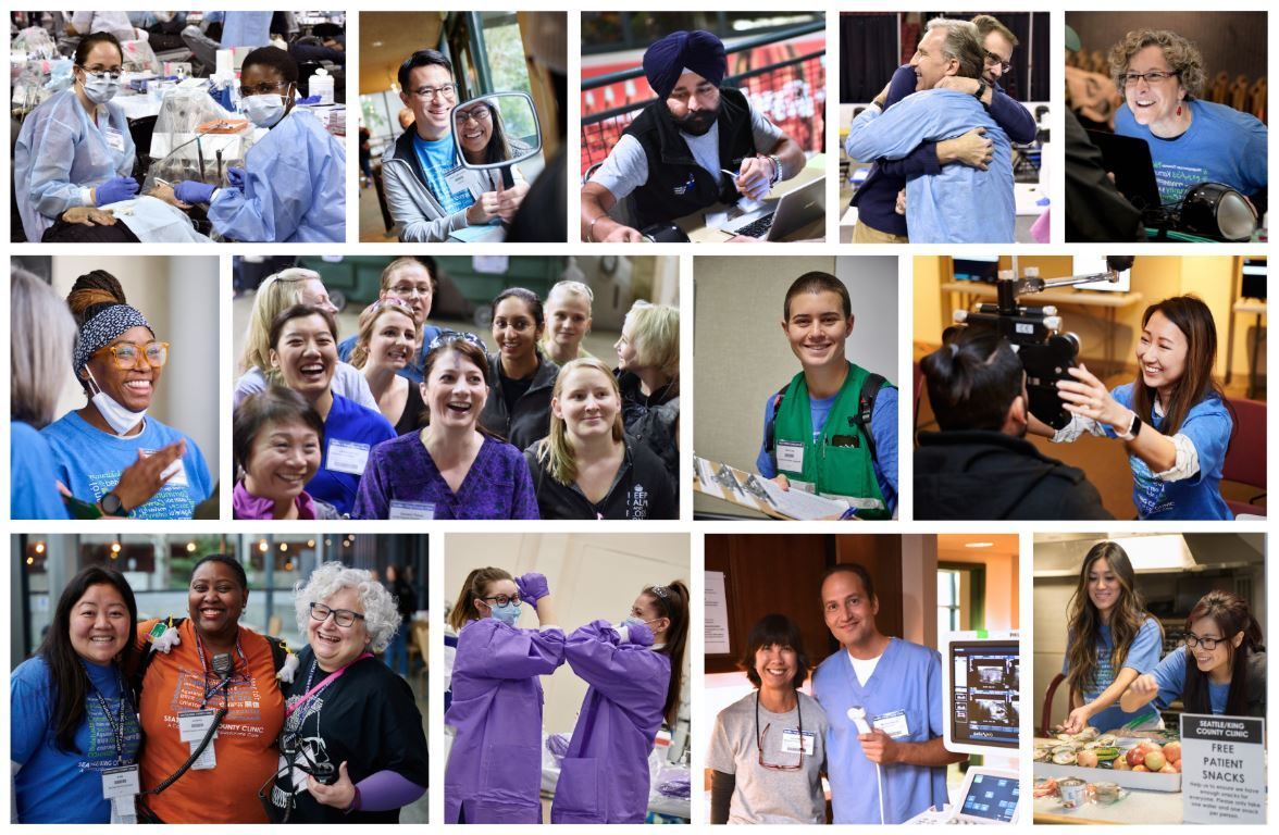 The annual Seattle/King County Clinic brings together healthcare organizations, civic agencies, nonprofits, businesses, and thousands of volunteers to produce the largest community-driven free health clinic of its kind in the United States. Now in its 10th year, the clinic is scheduled for April 23–26, 2026. A wide variety of general support volunteer positions (non-clinical) and clinical roles are available at the Clinic.
